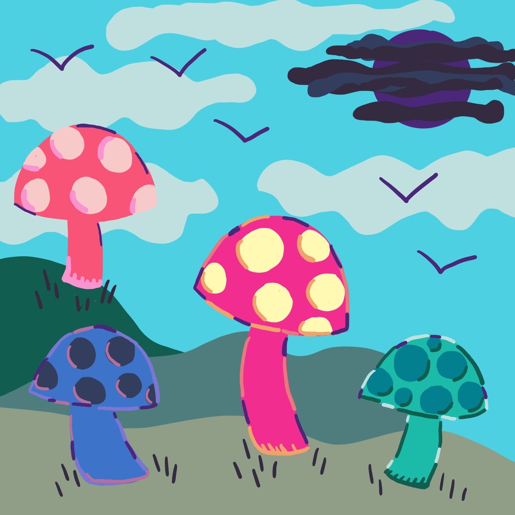 (See FUN COLORFUL MUSHROOMS IMAGE PRESENTED ABOVE, these embody the color selection of this palette).